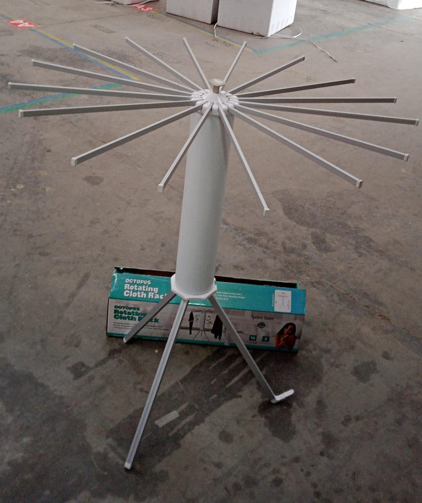 Efficiently dry your clothes with this innovative foldable rotary drying rack stand. Designed to combine functionality with compactness, this space-saving clothes drying solution is ideal for modern homes. With a 360° rotating arm design and multiple rods, it offers generous hanging space for all types of garments. Whether used indoors or on the balcony, terrace, or laundry area, its lightweight, foldable structure makes storage easy while keeping your clothes wrinkle-free and organized.